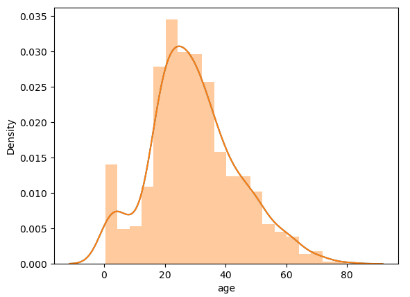sns.distplot(age) # kdeplot + hist