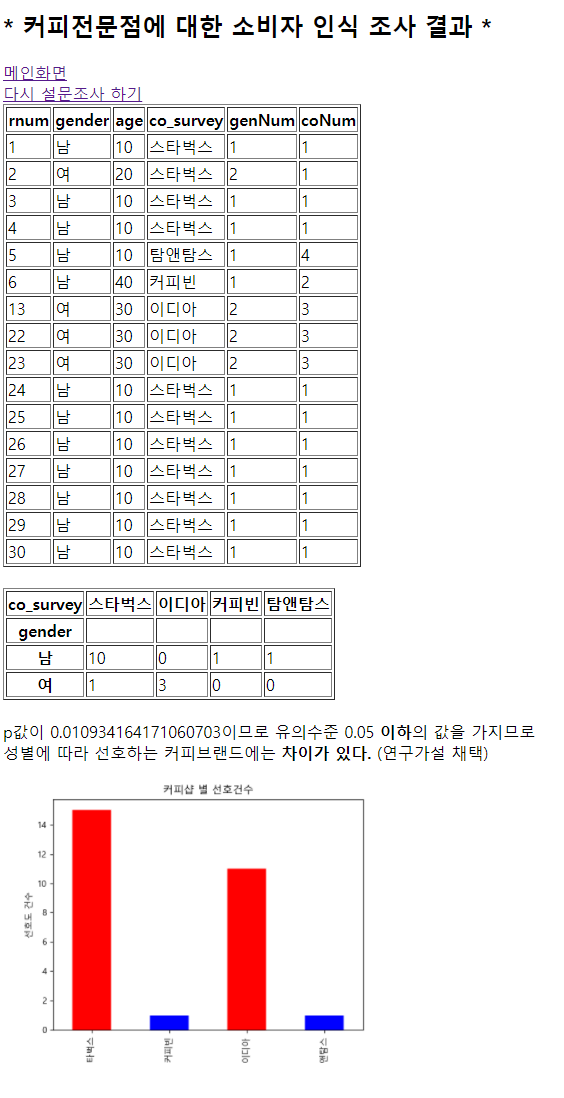 # print(rdata) # [{'rnum': 1, 'gender': '남', 'age': 10, 'co_survey': '스타벅스'}, ...