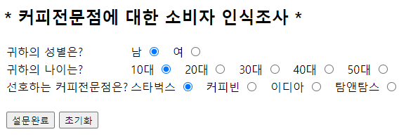 <input type="radio" id="coffeebean" name="co_survey" value="커피빈">