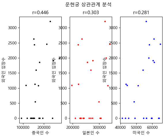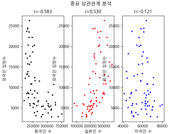 fig.suptitle(tourPoint + ' 상관관계 분석')