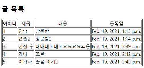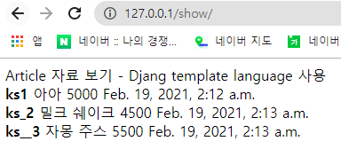 Article 자료 보기 - Djang template language 사용 <br>
