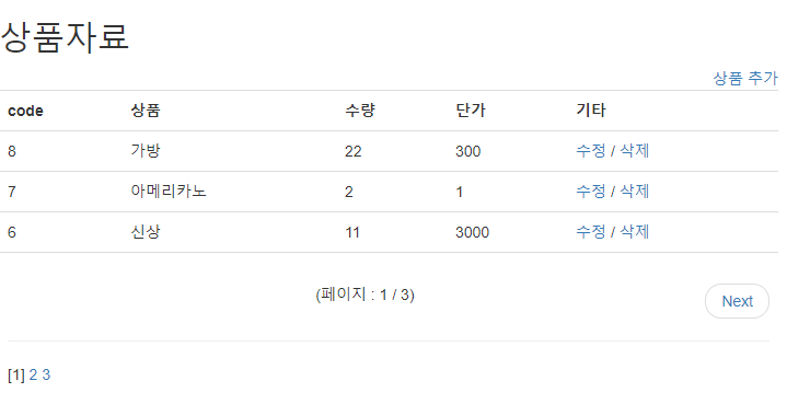 <li>(페이지 : {{sangpums.number}} / {{sangpums.paginator.num_pages}})</li>